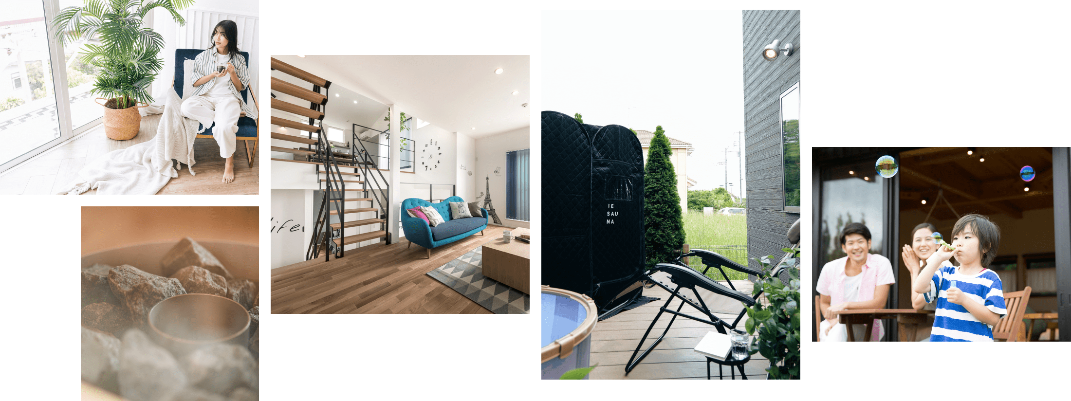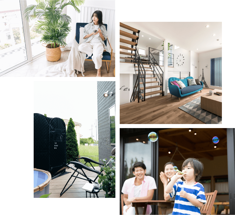 テントサウナと水風呂は標準採用の他、グリーンや焚き火台、ハンモックなど家族のリゾート空間を作れます。